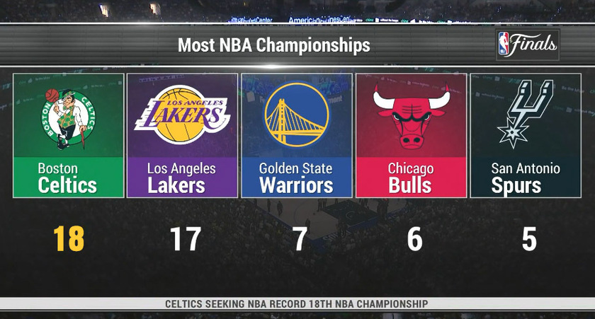 这是凯尔特人队史第18次拿下总冠军,力压湖人独占NBA队史总冠军数量第一名。