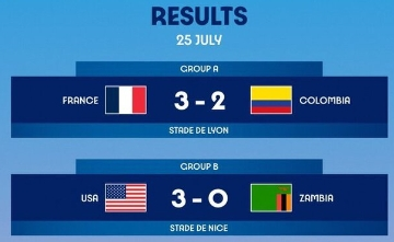 上半场法国女足攻势如潮,在第6、18和42分钟分别由卡托托、达莉完成破门,其中卡托托上演梅开二度,上半场法国女足3-0领先;易边再战哥伦比亚女足在第54和64分钟连扳两球,但最终未能逆转局面,且在第86分钟哥伦比亚女足球员梅拉-拉米雷斯被直红罚下,最终法国女足3-2胜出。
