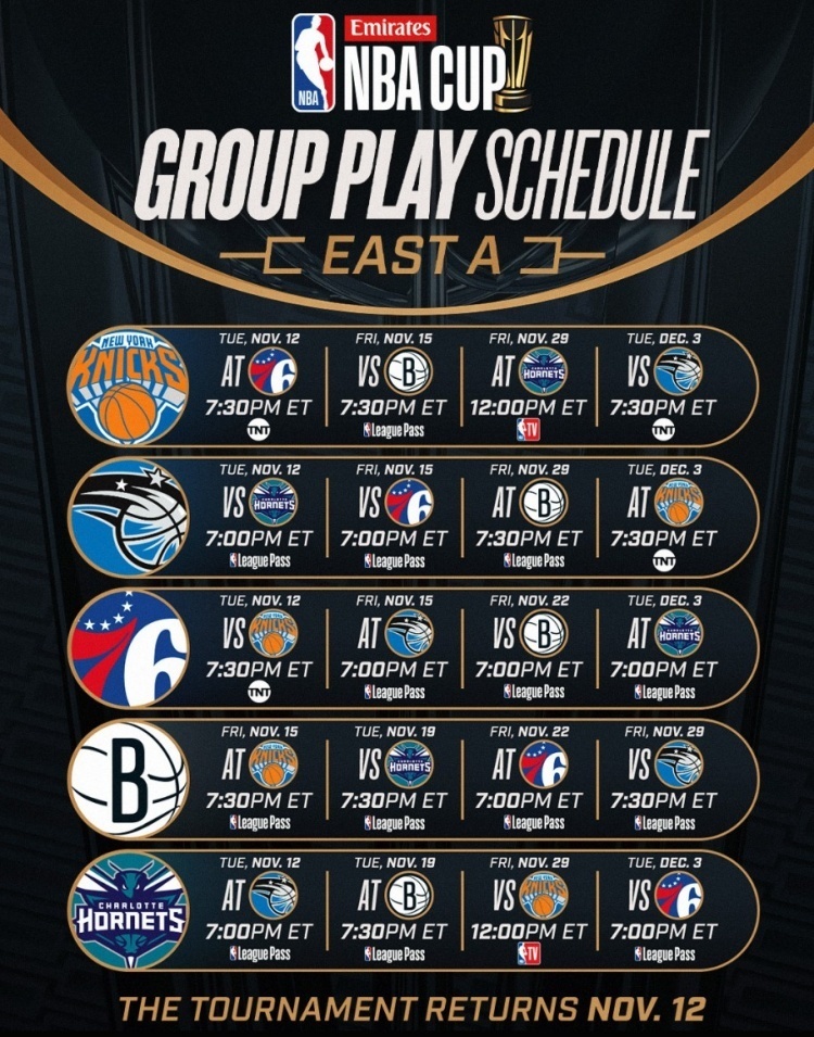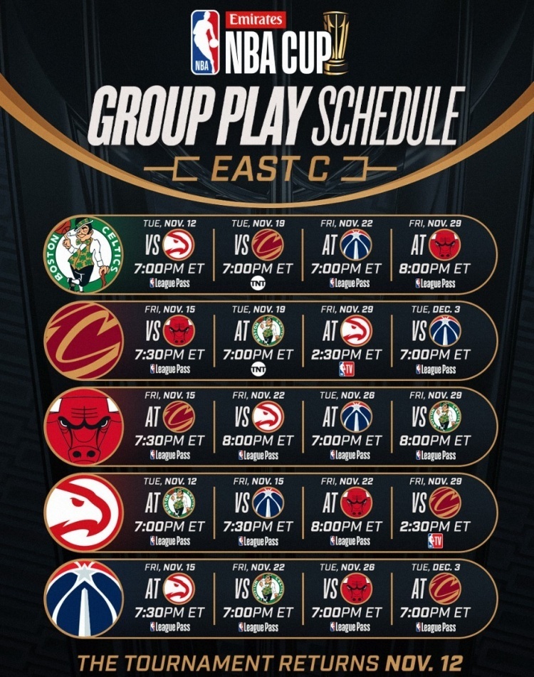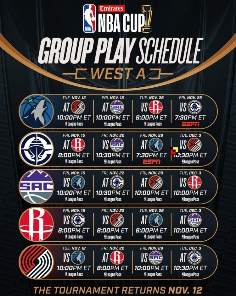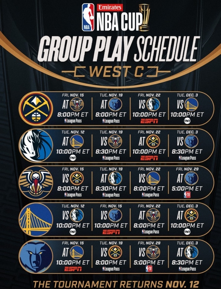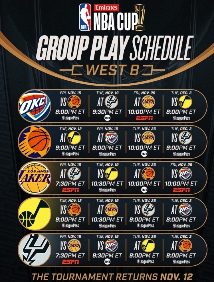 唯彩看球讯 今天,NBA官方公布了24-25赛季NBA杯(原季中锦标赛)的分组及赛程。