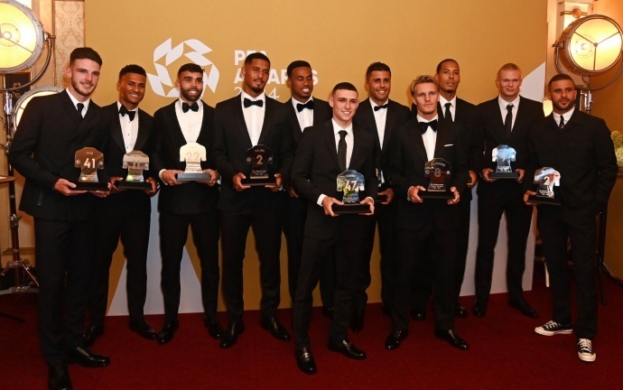 唯彩看球讯 PFA公布球员票选年度最佳阵,阿森纳5人入选最多,曼城4人,获得年度最佳年轻球员的帕尔默落选。