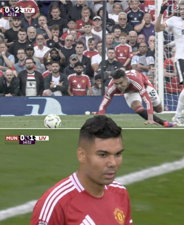 唯彩看球讯 曼联vs利物浦,比赛第35分钟,卡塞米罗后场传球被赫拉芬贝赫抢断,萨拉赫传中迪亚斯头球破门!