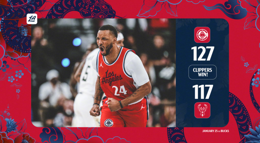 NBA常规赛,快船队在主场以127-117逆转战胜雄鹿,收获两连胜。比赛中,快船在最多落后11分的情况下,由哈登、鲍威尔和莱昂纳德三叉戟带队反扑。哈登在第三节轰下17分,并在末节携手鲍威尔打出14-0攻势反超比分。最终,哈登率队挡住雄鹿反扑,快船逆转取胜。此役,哈登完成本赛季第三次单场40+得分,本赛季13次罚球超过10次的比赛全胜。