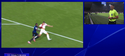 第35分钟,巴斯禁区内放倒小图拉姆,主裁判判罚点球,但VAR介入后显示小图拉姆禁区外有犯规动作,点球被取消。