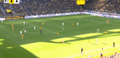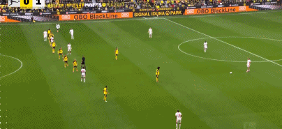 第23分钟,拜尔左侧底线外脚背挑传中路,吉拉西分球右侧,扬库托推射,皮球直入死角,多特扳平比分,1-1。