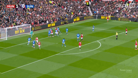 下半场第57分钟,曼联门将拉门斯出击与特拉奥雷相撞,后者被判罚假摔染黄。第64分钟,进球功臣芒特被换下,库尼亚替补登场。第70分钟,迪亚洛倒三角回敲,卡塞米罗将球踢高。第75分钟,扎卡身后踢倒库尼亚,主裁判出示黄牌。第81分钟,卡塞米罗铲倒布罗贝伊,主裁判出示黄牌。第90分钟,塔勒比单刀推射,被拉门斯用腿挡出。最终,曼联2-0战胜桑德兰。