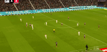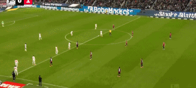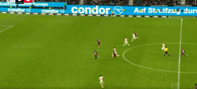 法兰克福进球被吹:第14分钟,法兰克福的巴霍亚远射轰出世界波,但VAR介入后确认堂安律接球时手球,进球无效。