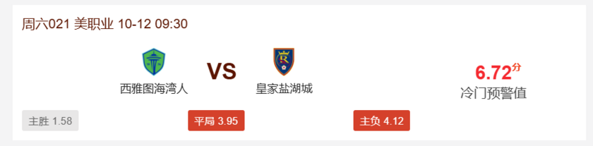 北京时间10月11日,冷门预警为大家罗列各项足球让球胜平负和足球胜平负的赛事误差较大场次,各位球友敬请留意,本日为大家带来美职联,西雅图vs盐湖城的解读。