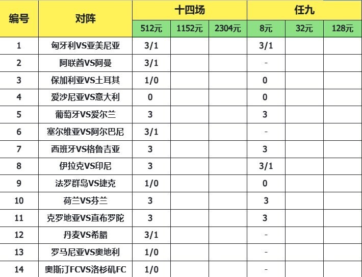 胜负彩25143期聚焦多场世预赛及美职联,意大利、葡萄牙等强队主场出击,西班牙、克罗地亚实力碾压,荷兰、丹麦状态正佳,奥地利客场强势。以上是致命大师本场看法: