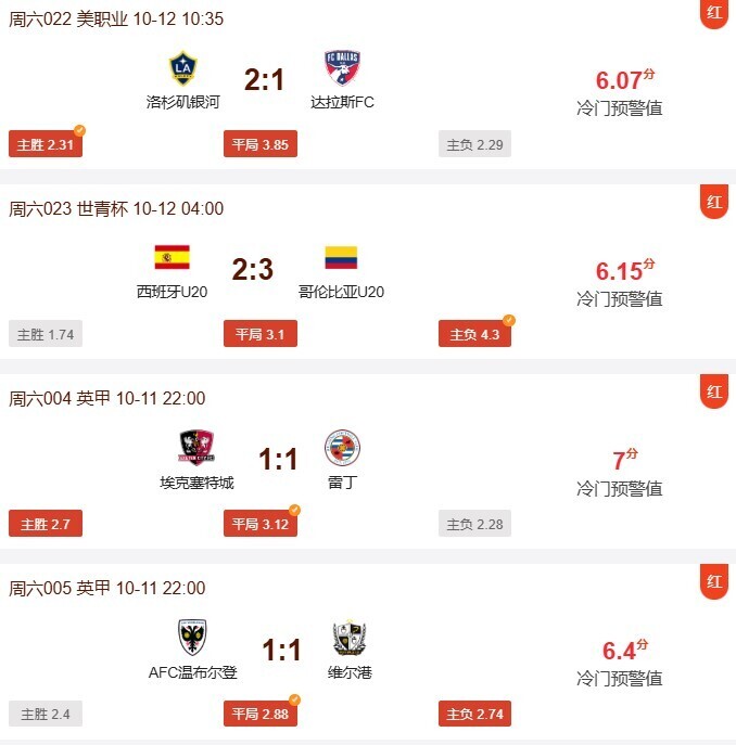 冷门预警最新推荐