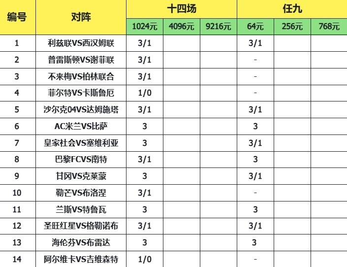 致命14场胜负彩25151期,本期分析涵盖英超、德甲、意甲等主流联赛,重点关注各队近期状态与数据变化。利兹联、AC米兰等强队主场获数据支持;沙尔克04、甘冈等中游球队凭稳定表现值得看好;吉维森特作为客场强势方获数据青睐。所有推荐均基于战绩与数据客观分析,为赛事提供理性参考。