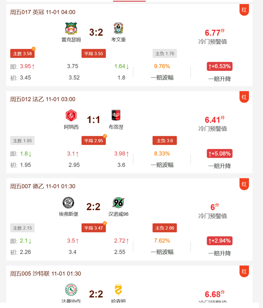 北京时间11月1日,冷门预警为大家罗列各项足球让球胜平负和足球胜平负的赛事误差较大场次,各位球友敬请留意。昨日精准抓冷多场赛事,其中更是精准抓中考文垂赛季首负,持续保持高效表现!