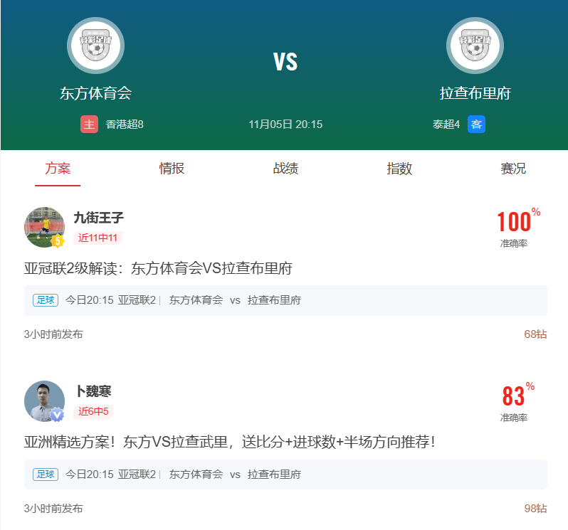 周三003亚冠乙推荐:香港东方VS拉查布里