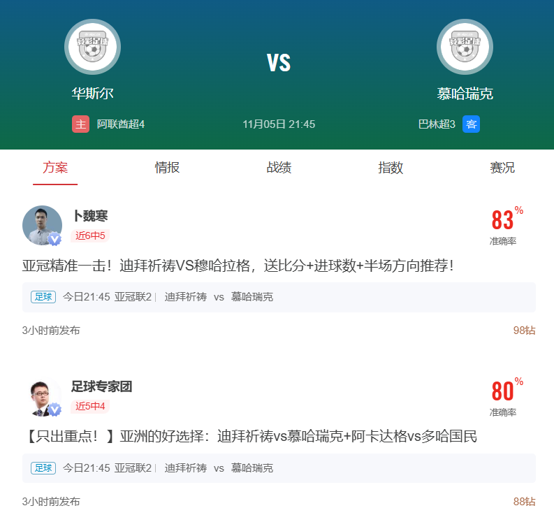 周三004亚冠乙推荐:迪拜祈祷VS穆哈拉格