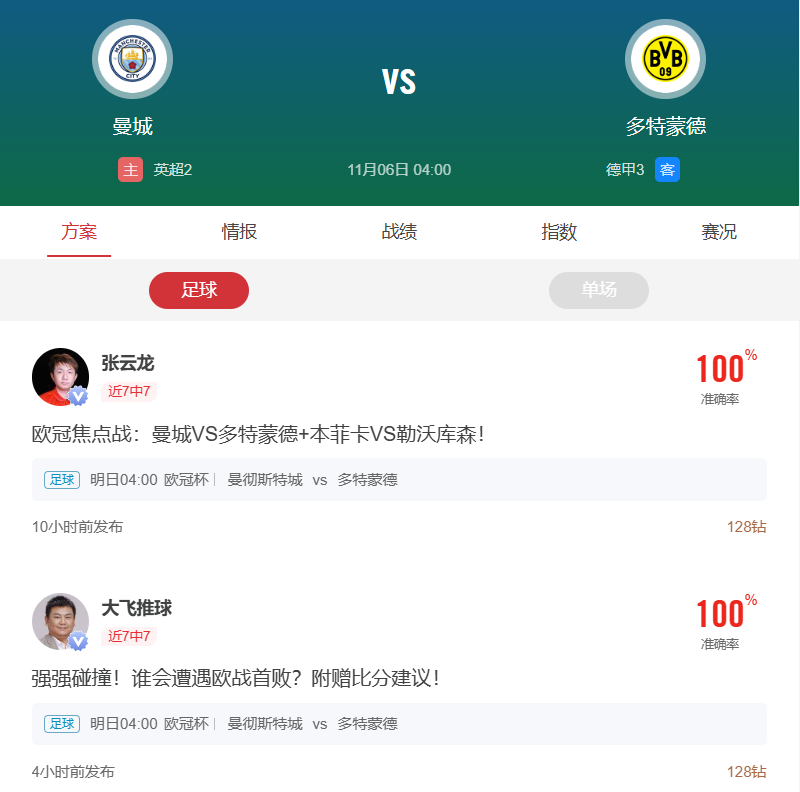 曼城在积分形势、主场优势、阵容完整性和历史交锋层面均占据明显上风,且战术体系成熟、攻防均衡;多特蒙德虽状态良好、反击威胁存在,但伤病问题严重、客场表现不稳且防守漏洞突出。综合来看本场比赛曼城主场取胜的可能性较大。