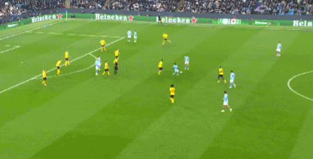 第22分钟,曼城前场连续传导,赖因德斯向前做球,弧顶位置的福登得球转身调整后,左脚兜射打出贴地箭破门,曼城1-0取得领先。