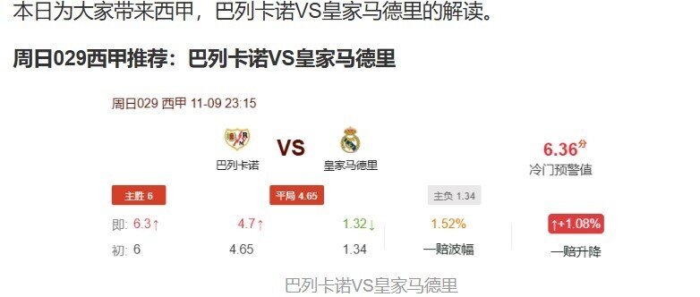 冷门预警成功命中!冷门预警:西甲巴列卡诺状态出色,皇马体能不佳或丢分?