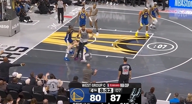 比赛第四节,文班亚马在进攻过程中遭到勇士球员的包夹防守。回放显示,波杰姆斯基在倒地时做出了扫腿动作,恰好绊倒了文班亚马,裁判当即吹罚波杰姆斯基防守犯规;与此同时,德雷蒙德·格林在尝试封盖文班亚马时抬脚过高,疑似踢到了他的裆部。不过目前还不能确定这些对抗动作就是导致文班亚马小腿拉伤的直接原因。且文班亚马在经历这些对抗后,依旧打完了比赛最后16分钟,期间并未下场休息。