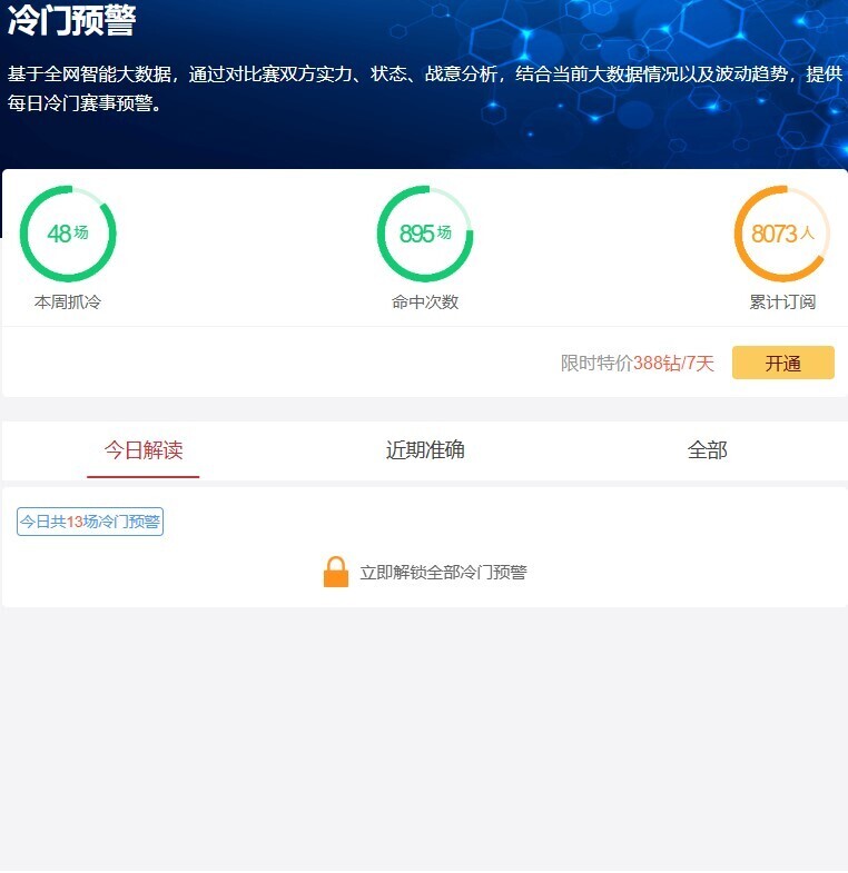 昨日门预警工具精准命中多场冷门赛果,其中吉达国 VS沙迦(1.21 5.3 8.75)打出八倍冷门赛果,工具整体预测正确率表现极佳。
