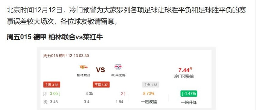 上期冷门预警名字!冷门预警:柏林联合状态不稳,莱比锡上轮狂胜法兰克福