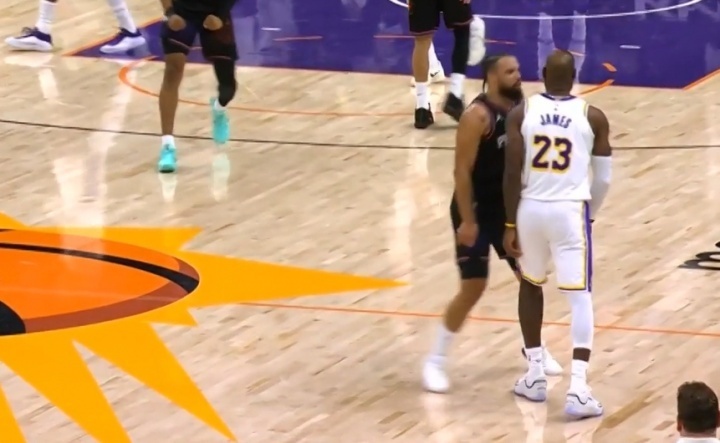 然而詹姆斯执行技术罚球却意外失手,错失扳平机会,但他随即在进攻端强突三分线,造成布克犯规,获得三次罚球机会。
