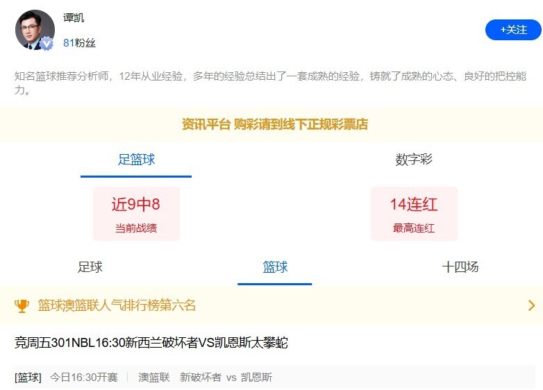 谭凯9中8!今日篮球推荐已发车,速速点击查看
