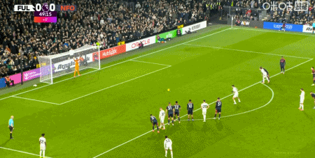 第45+5分钟,凯文禁区内突破被道格拉斯·路易斯放倒,主裁判罚点球,VAR复核后维持原判;希门尼斯主罚命中,富勒姆1-0领先。