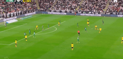 第20分钟,阿里·迈拉希后场长传,托尼反越位单刀抽射破门,完成梅开二度,吉达国民2-0扩大比分。