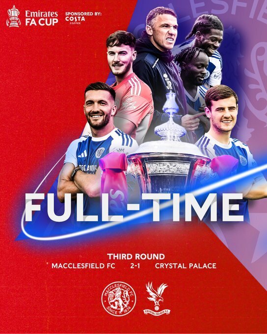 1月10日的这场对决,从一开始就被贴上了“强弱悬殊”的标签。一边是首发身价2.3亿欧元、近年在格拉斯纳率领下有着惊艳表现的足总杯卫冕冠军水晶宫,控球率高达72%,手握7个角球的绝对优势;另一边是联赛级别相差117位、依靠足总杯转播收入维持运营的麦克斯菲尔德,全队赛季预算不及水晶宫一名主力球员的周薪。