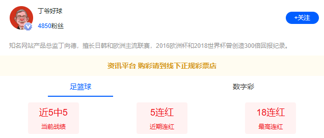 5连红爆红风光,名牌专家丁爷好球稳胆持续放送>>