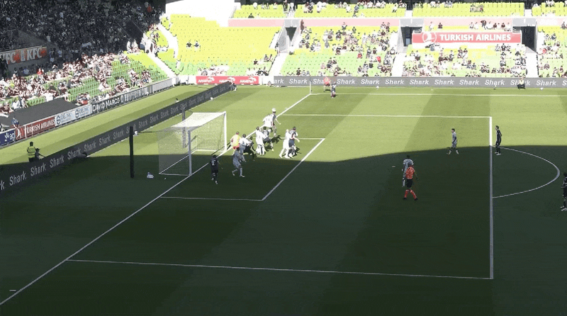 下半场易边再战,第50分钟,墨尔本胜利戴维森头球破门,但VAR判定手球在先,进球无效,墨尔本胜利三个进球被吹。