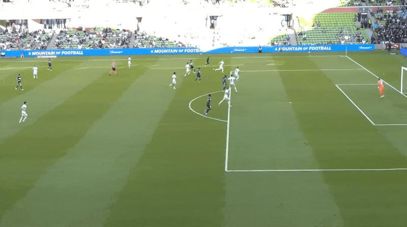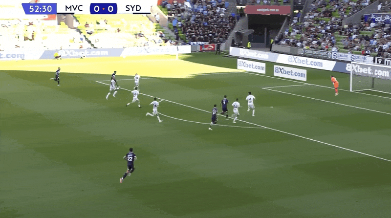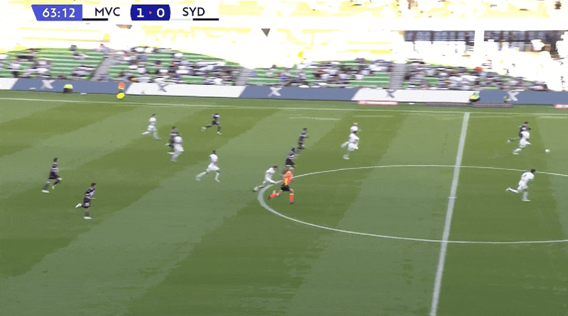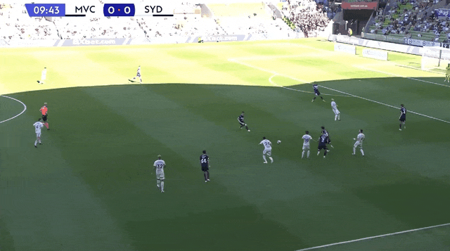 第13分钟,埃斯波西托摆渡,戴维森头球破门因越位被判无效;墨尔本胜利再次进球,再次被吹。