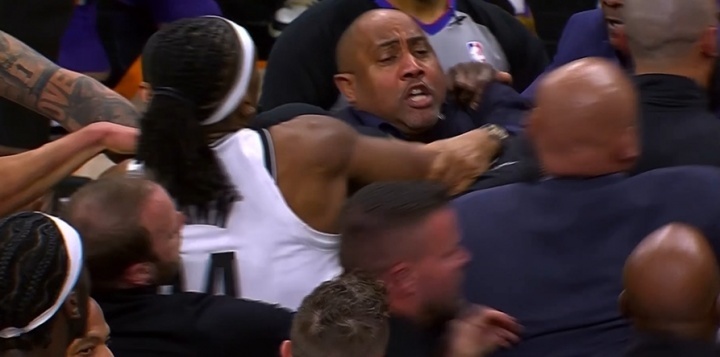 末节1分14秒,太阳102-100领先,狄龙与杰明争抢地板球,哨响后狄龙紧握球不放,杰明从身后将其推飞,点燃冲突。此前曼恩被阿伦推倒致后脑勺磕地,阿伦已领一级恶意犯规,情绪隐患已存。