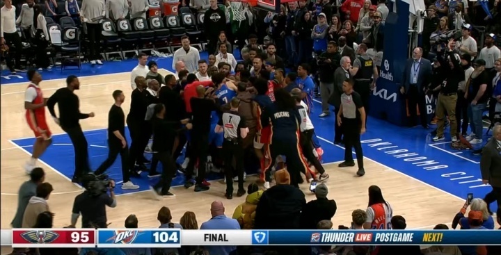 终场哨响后,鹈鹕费尔斯在胜负已定的情况下仍尝试进攻“刷分”,被雷霆多尔特防下,费尔斯喷垃圾话,多尔特不满引发口角与肢体冲突。