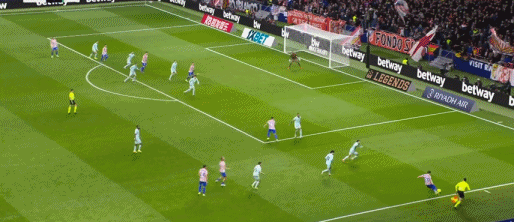第57分钟:瑟洛特头球攻门击中横梁,马竞再失扳平机会。