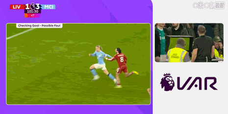 伤停补时尾声,利物浦全线压上,谢尔基接传球打空门,皮球滚向球门。VAR介入后判定,索博斯洛伊拉拽哈兰德犯规,进球取消,索博被直红罚下。最终曼城2-1逆转,利物浦争四形势愈发严峻。