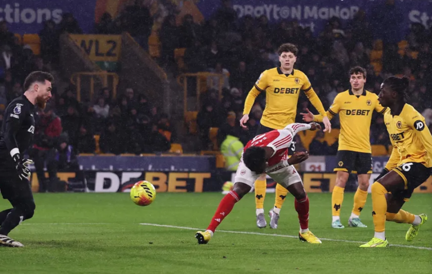唯彩看球讯 北京时间2026年2月19日,英超第31轮阿森纳客场挑战狼队。萨卡打破15场球荒破门,补时阶段狼队球员卡拉菲奥里乌龙,最终阿森纳2-2遭狼队绝平。