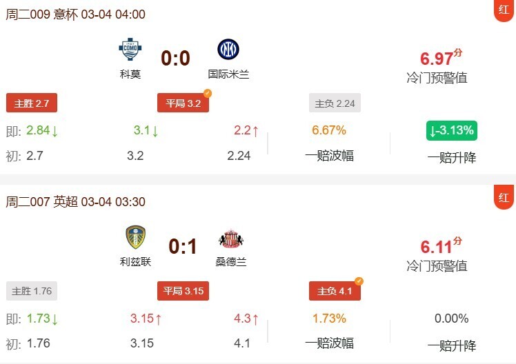 【冷门预警】发布高能警报:今日多场重点赛事冷门指数爆表,部分场次冷门预警值已达到7分速来锁定详情!