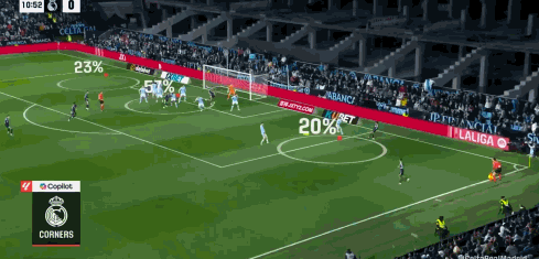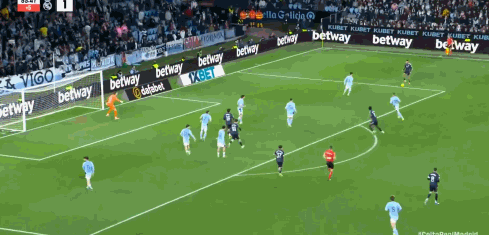 比赛进入补时阶段,第90+4分钟,塞尔塔解围未能踢远,巴尔韦德在禁区外围起脚重炮轰门,皮球折射后飞入网窝,完成致命绝杀,帮助皇马锁定胜局。