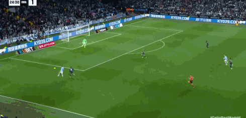 第11分钟,皇马通过战术角球配合打开局面,居莱尔倒三角回敲至禁区前沿,琼阿梅尼推射皮球击中立柱后弹入网窝,帮助皇马客场取得领先,这也是琼阿梅尼职业生涯的联赛处子球。