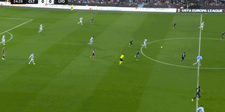第25分钟:塞尔塔球员鲁埃达接维勒特·斯维贝里的助攻破门,主队1-0领先里昂。