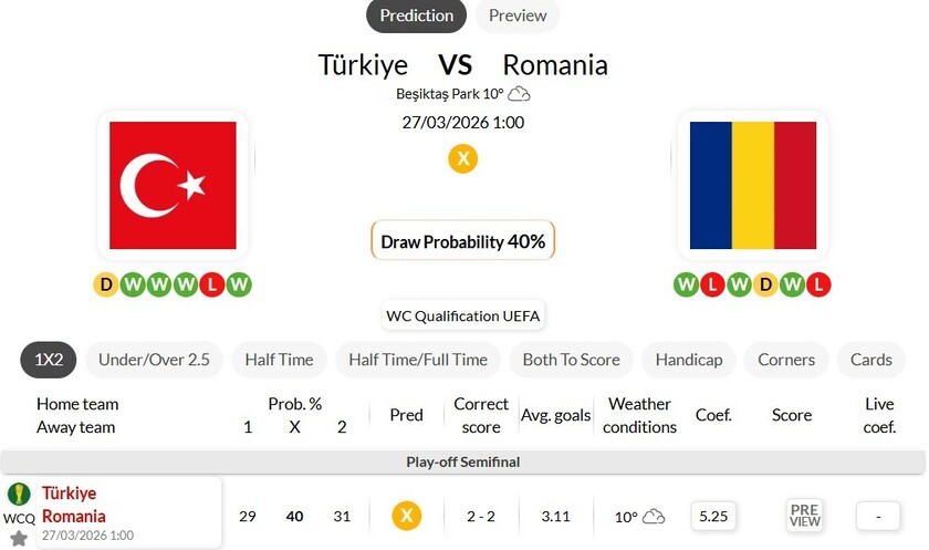 -In the last 5 head-to-head meetings, Turkey hold a 3-2 advantage over Romania with no draws.