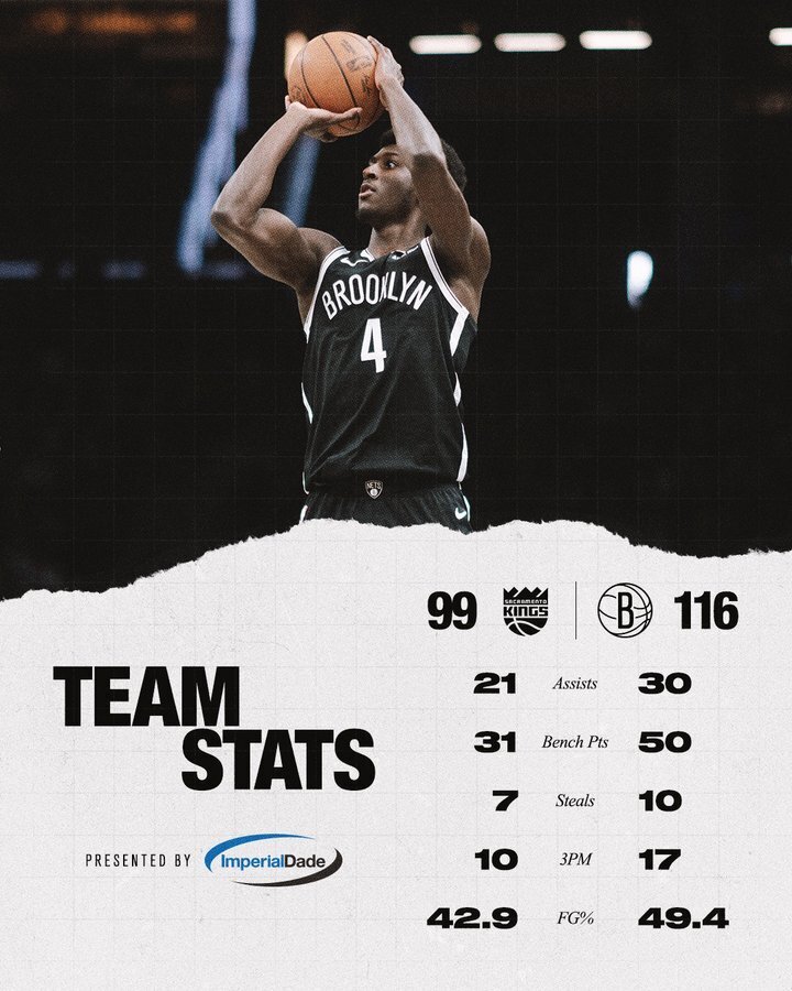 下半场易边再战,篮网命中率有所下滑,国王抓住机会连投带罚不断缩小分差。不过篮网在末节调整节奏,稳扎稳打守住领先优势,国王无心恋战,最终未能实现逆转。全场比赛篮网在篮板、助攻两项数据上均占据上风,最终拿下关键胜利。