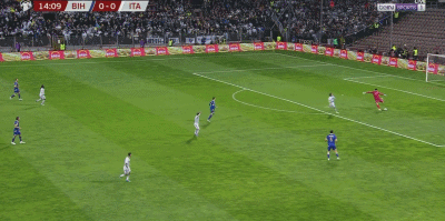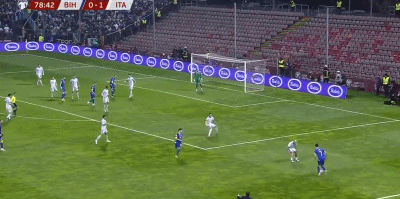 上半场,波黑门将瓦西里出球失误送礼,巴雷拉助攻小基恩兜射破门,意大利取得领先。