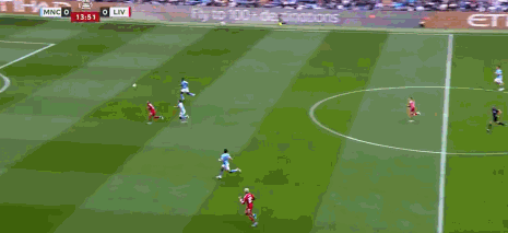 第14分钟,利物浦进攻推进到曼城禁区前沿。萨拉赫在禁区内获得起脚机会,局面十分有利。
