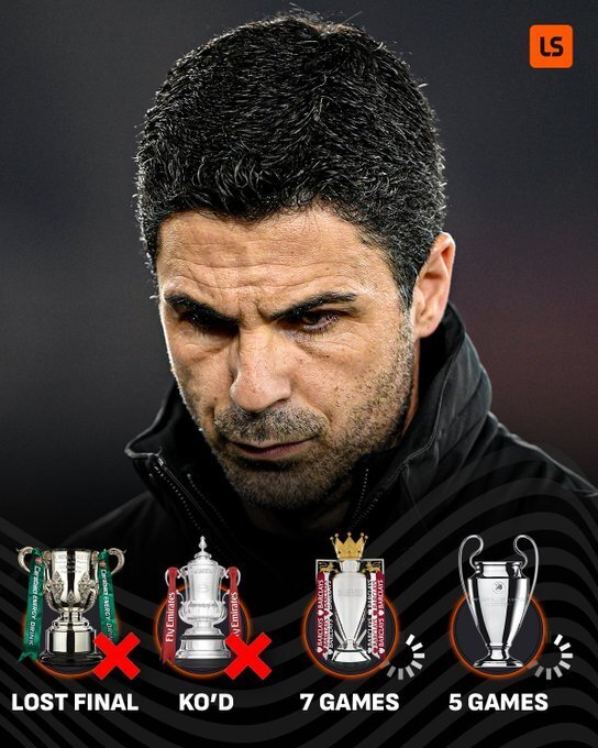 背景:阿尔特塔大幅轮换(萨卡、厄德高替补),为欧冠留力,却被英冠球队淘汰,止步八强