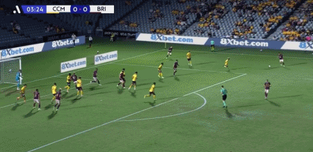 半场结束,中央海岸水手0-1落后布里斯班狮吼。