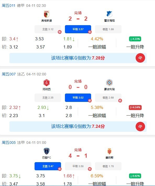 北京时间4月11日,冷门预警为大家罗列各项足球让球胜平负和足球胜平负的赛事误差较大场次,各位球友敬请留意。