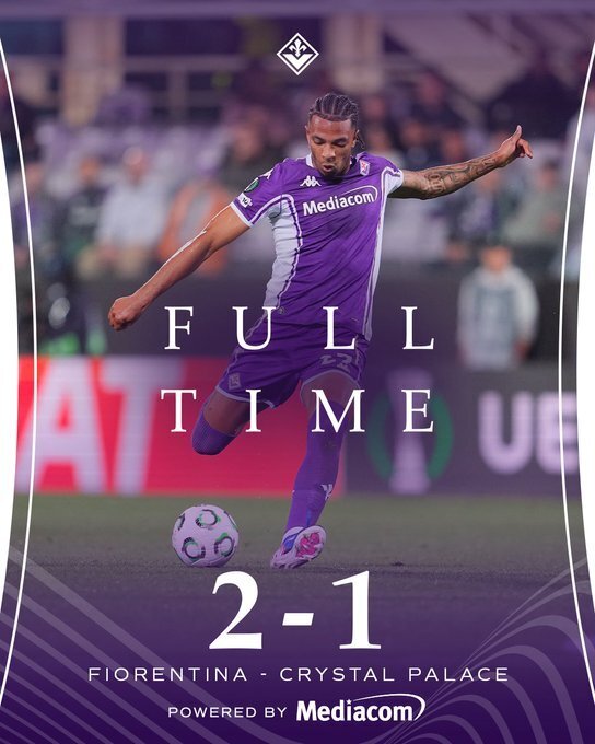 全场比赛结束,佛罗伦萨2-1击败水晶宫。