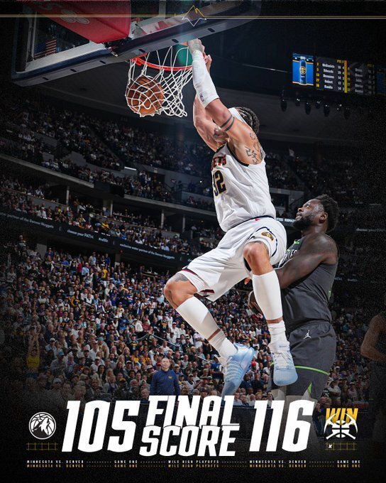 唯彩看球讯 NBA季后赛首轮今日正式开打,常规赛排名西部第3的掘金坐镇主场迎战西部第6的森林狼。最终,掘金在一度落后两位数的情况下完成逆转,以116-105力克森林狼,取得系列赛开门红。
