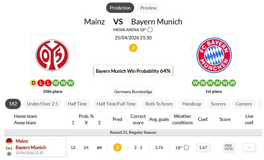 美因茨 VS 拜仁慕尼黑